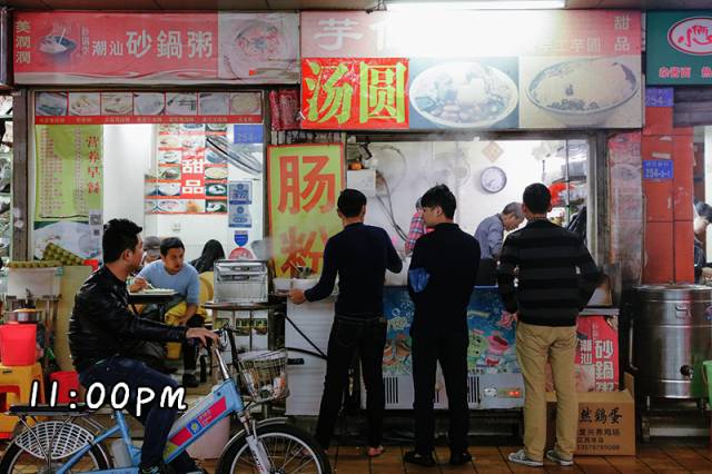 住在附近的人也很喜欢深夜点上一份丰富的肠粉,所以这家店经常开一整个通宵,是湖贝村最忠实的深夜食堂。