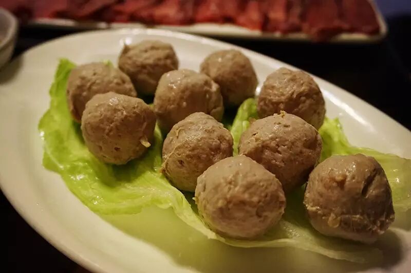 吃完牛肉还不过瘾,快来一份手打牛肉丸,保准你爱不释口。选用牛腿肉,去筋切块,师傅手握两根方形铁棍捶用力把牛腿肉槌成肉浆,独特的制作手法使肉浆保持较长的肌肉纤维,从而在成丸后产生强韧的弹性,吃起来Q弹有劲,汤汁饱满!