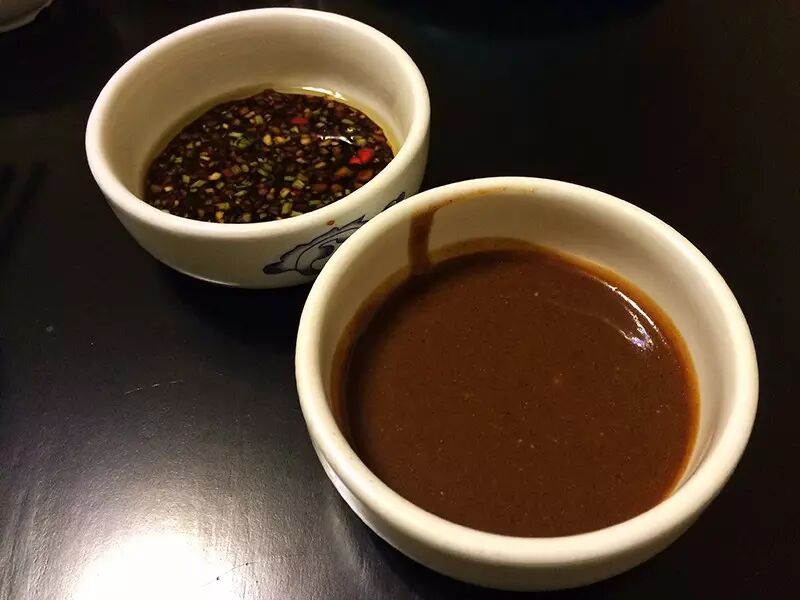 3.料。潮汕火锅的重头戏是牛肉,但是搭配的酱料更是点睛的神来之笔,岭南味道精心调制的沙茶酱,微甜细腻;避风塘酱汁滋味十足。另外还特意自制潮汕辣椒酱,传统辣椒油,特制芝麻酱,多种选择,口味丰富。