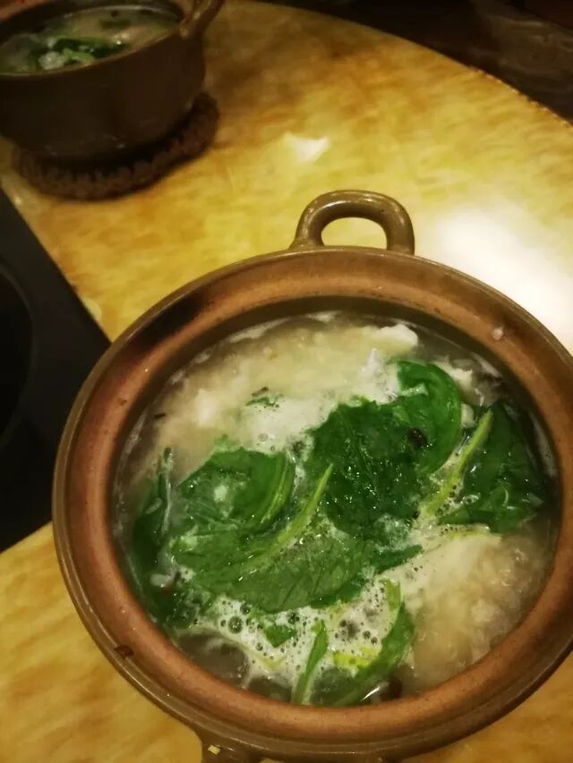 我是第一次吃石斑煮成砂锅鱼粥。