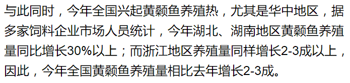 由于浙江湖州是黄颡鱼核心地区,养殖规模大,当地大量上市很可能打破目前黄颡鱼价格的平衡,除了影响本地价格外,也将影响其他产区。据悉,湖州市场存塘鱼达9成以上。