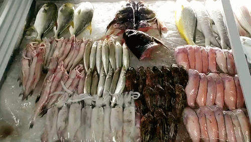 石斑鱼、斗仓鱼、马头鱼、沙尖鱼、油带鱼、箭头鱼、九肚鱼、扒皮鱼、石干鱼、班猪鱼、红彬鱼、黄花鱼、树叶鱼、金仓鱼、鲜鱿鱼、小白仓鱼、乌仔鱼、三目蟹、凤尾鱼、河豚鱼等。