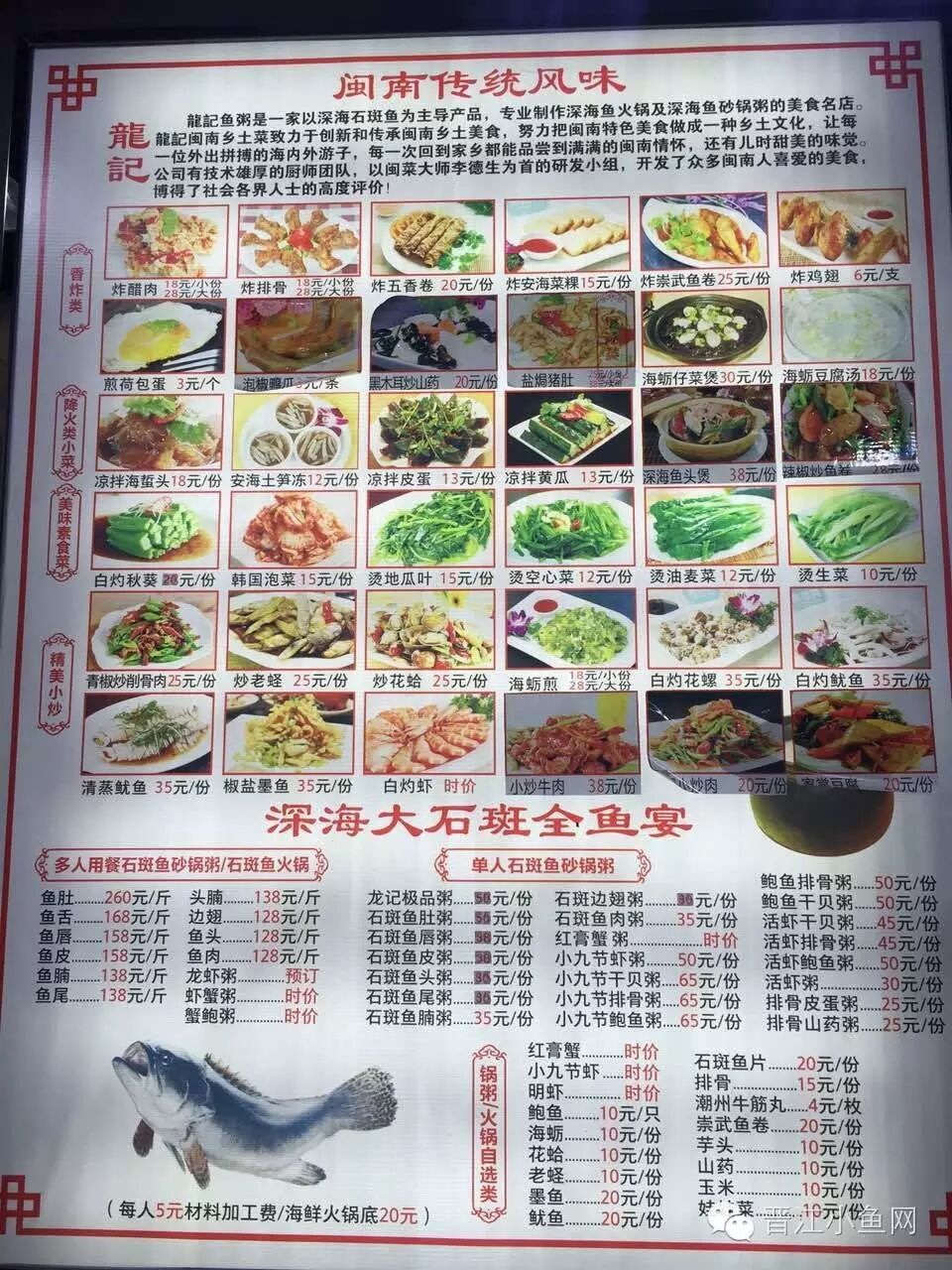 龍记鱼粥是一家以深海石斑鱼为主导产品,专业制作深海鱼火锅及深海鱼砂锅粥的美食名店。龍记闽南乡土菜致力于创新和传承闽南乡土美食,努力把闽南特色的美食做成一种乡土文化,让每一位外出拼搏的海内外游子,每一次回到家乡都能品尝到满满的闽南情怀,还有儿时甜美的味觉。公司有技术雄厚 的厨师团队,,开发了众多闽南人喜爱的美食,博得了社会各界人士的高度评价!