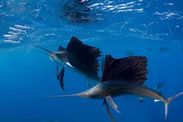 1/4 我们再来看看我们的游泳冠军——剑旗鱼,日常时速就能达到90公里,可是深海中非常稀有的鱼类。
