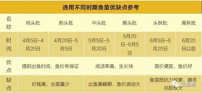 即次年出鱼模式,此模式也有部分养户采用,5月1日之前下黑芝麻(头批苗),次年4月15日前清塘。