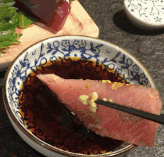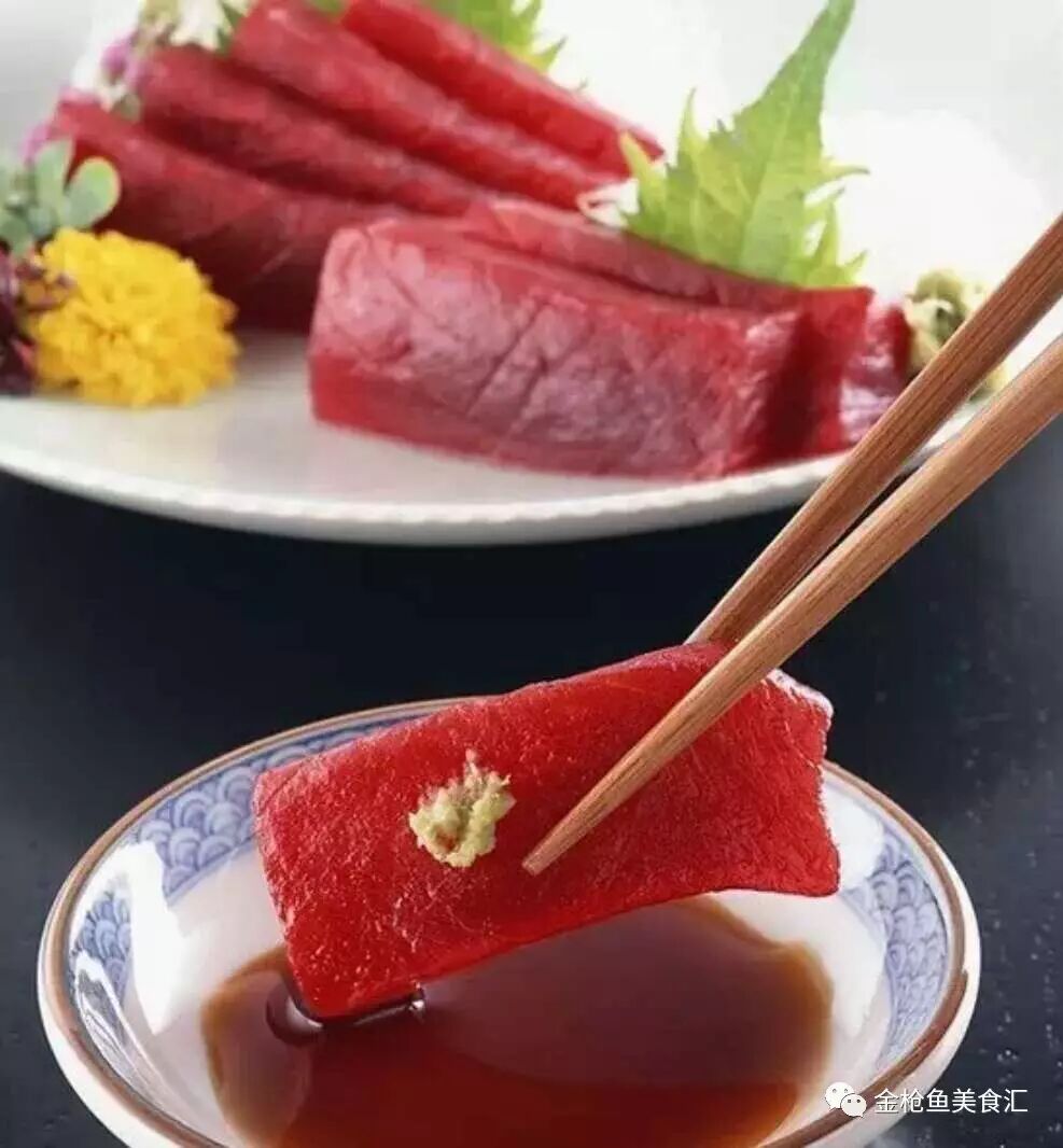 金枪鱼的肉质非常特别,生食味美,口感极佳,尤其是蓝鳍金枪鱼的大腹、中腹,油脂丰厚、肉质鲜美细腻,是最高级的生鱼片原料。