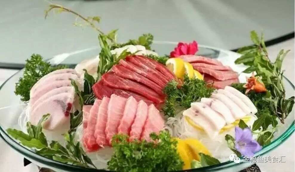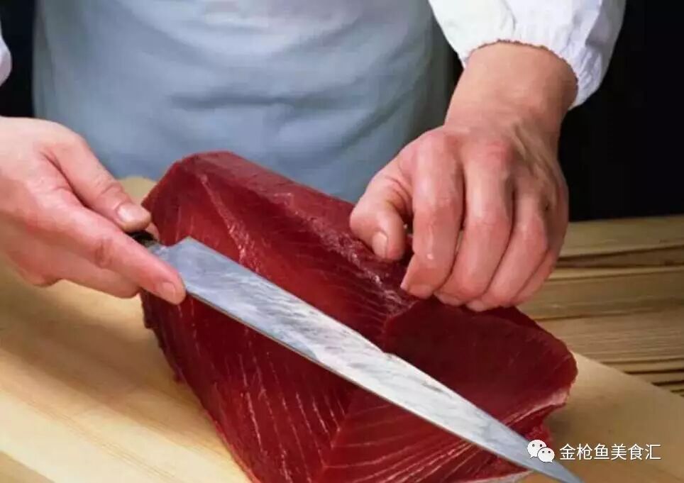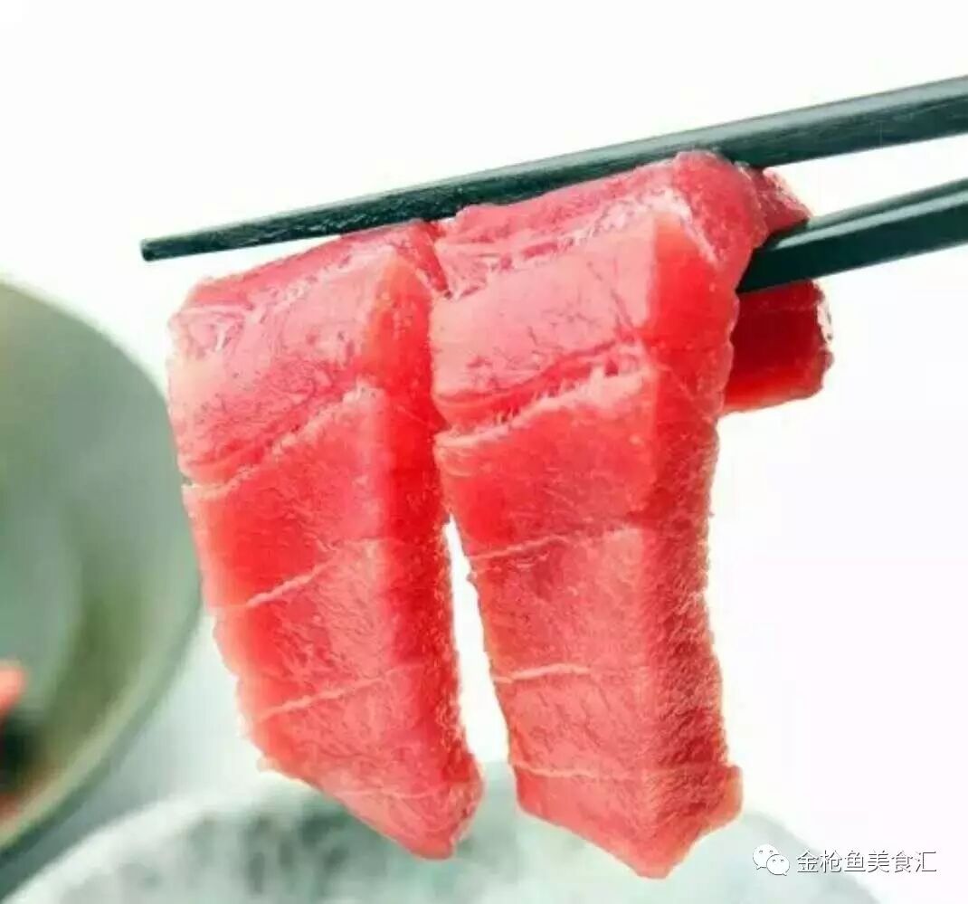 金枪鱼也称鲔鱼、吞拿鱼。金枪鱼的肉质非常特别,生食味美,口感极佳,尤其是蓝鳍金枪鱼的大腹、中腹,油脂丰厚、肉质鲜美细腻,是最高级的生鱼片原料。