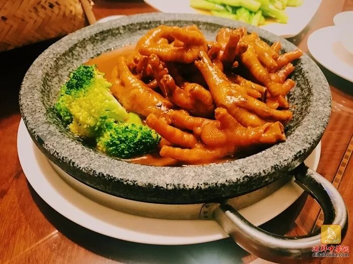 石锅鲍汁凤爪,也是迪拜楼外楼中餐厅最受欢迎的菜色之一。用厚重的石锅呈上,炖的软糯的凤爪,完美吸收了鲍汁的鲜味,让人食指大动,忍不住细细啃食掉每一个关节处的每一块肉。吃完还得吮一下手指,不浪费最后一点残留的余味。吃到最后,盘底的汤汁恢复室温,结成了Q弹的肉冻,满满的胶原蛋白啊~