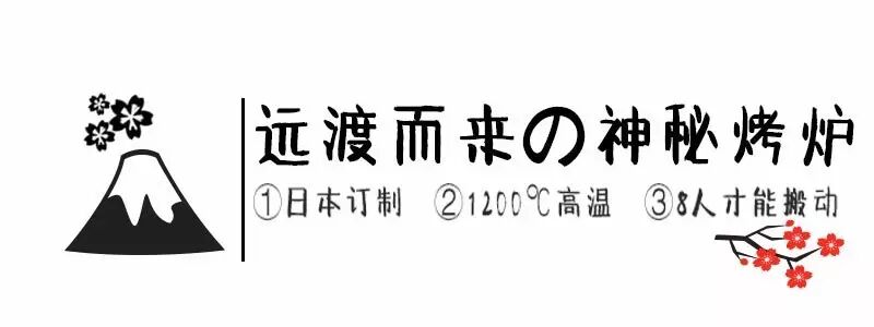 日本远渡而来的神秘烤炉,长达1.2m,需要8个壮汉才能搬动,分上下两层,每层还有不同的区域,分别烤制不同的食材。
