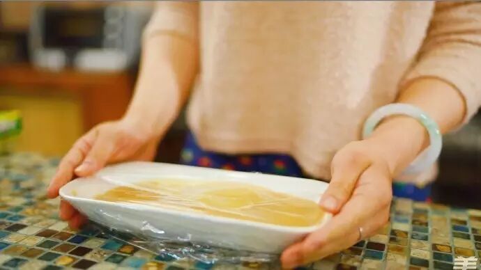 把味增酱倒在银鳕鱼上,让酱料完全覆盖住鱼,放入冰箱腌制24小时