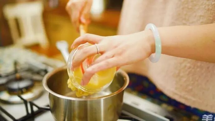 拌入西京味增后关火,搅拌均匀成味增酱,晾凉待用