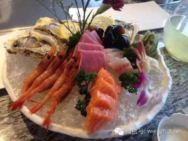 在餐厅的最西边还有刺身、寿司、甜点自助取餐区。三文鱼、生蚝、金枪鱼、八爪鱼……各类讨喜的海鲜刺身也是无限量供应的。