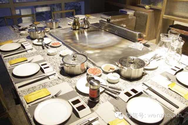 铁板烧餐台上还有一个电磁炉火锅盅,里面盛有高汤,你可以按着个人的喜好将一些食材放里面涮。