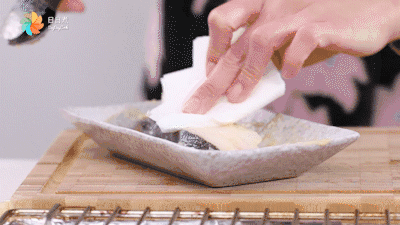 抹去银鳕鱼表面的腌料,放上烤架,放入烤箱烤10-12分钟或至表面金黄色,即成。