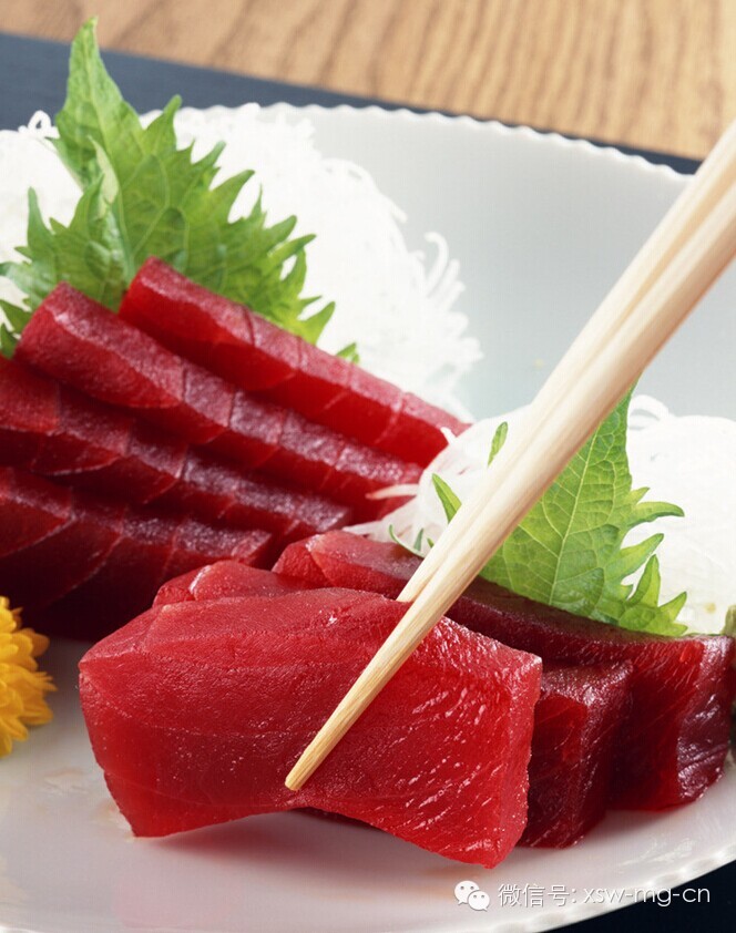 金枪鱼又叫鲔鱼,华人世界又称为“吞拿鱼”。国际公认的“刺身之王”。金枪鱼对于国内绝大多数人来说,还是一个比较生疏的鱼类,但是在发达国家,无论男女老少都知道金枪鱼的美味,而且营养丰富,美国人吃的海鱼中20%就是金枪鱼。金枪鱼生活在400米无污染深海,而且金枪鱼一生不停地快速游动,其游泳最高时速可达160公里/小时,因此金枪鱼肉质柔嫩而鲜美,其蛋白质含量高达20%,但脂肪含量却很低,100克得金枪鱼肉中含有20克的蛋白质,仅有1.4克的脂肪。且所含氨基酸齐全,还有丰富的铁、钾、钙、碘等多种矿物质,是现在人不可多得的健康食品,金枪鱼中的不饱和脂肪酸DHA和EPA含量居各种食物之首,饮食界将其称为天然的脑黄金,金枪鱼在国际上早享有“刺身之王”的美誉,多吃金枪鱼能令成人精力充沛,让孩子们聪明可爱,金枪鱼更是许多明星大腕餐桌上的“至臻常客”