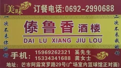 傣鲁香酒楼菜品和烧烤推出外卖服务,