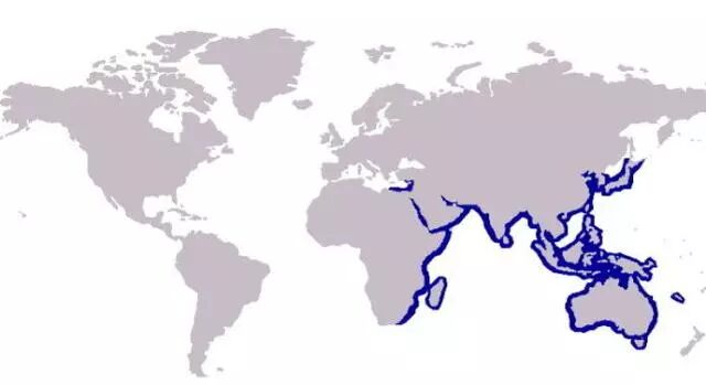 沙鮻分布图 - - 东南亚国家产量很大,这也是沙鮻在大马、印尼等国极其流行的原因。