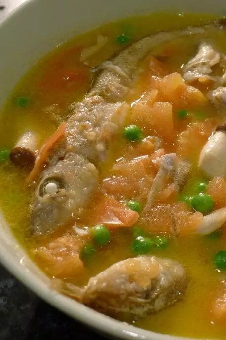酸汤银鮻 - 做法: 会做西红柿炒鸡蛋的就能做这酸汤银鮻。先把银鮻两面稍微煎一下,放入切成薄片的西红柿和蘑菇,然后倒入适量开水。盖上盖大火烧开后炖2-5分钟即可。出锅前1分钟放青豆。