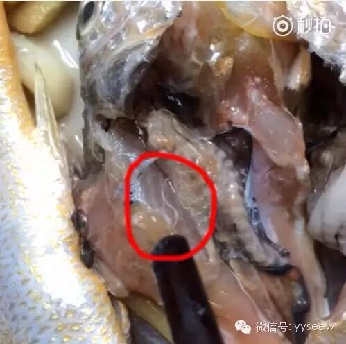 杨女士还在微博上发了一段关于虫子的小视频:鱼肚子里,一条细细的白色半透明的虫子呈“S”形正在扭动着身子。视频时长15秒,虫子一直在扭动,看得人有点反胃。