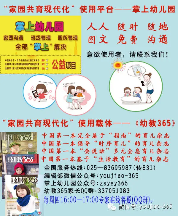 如您想育儿更科学,想每天一个亲子互动游戏方案,“会说话”的《幼教365》杂志天天帮助您。