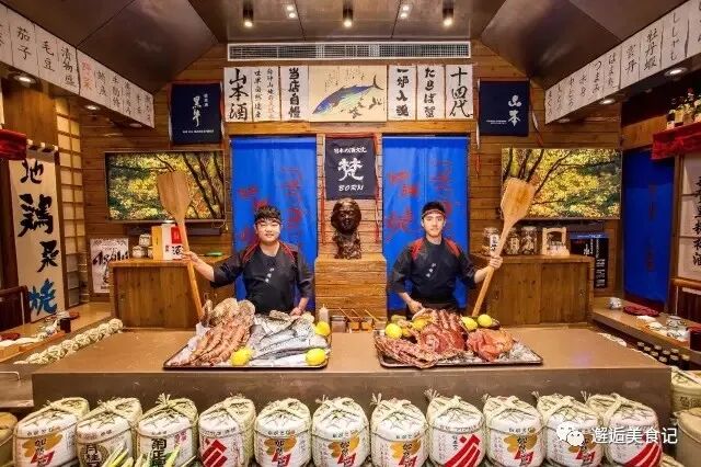 有别于其他的餐厅,伊藤酒菜处的炉端烧更像是一个现点现做的“食材大卖场”,食客们围坐在烤炉周围,新鲜的食材就放在面前,指点江山般的现挑现选,厨师便会在餐台后现场料理,一柄长而有气势的船桨,是刚烤好的食物与食客之间的桥梁,食客在这端、大厨就在另外一端。