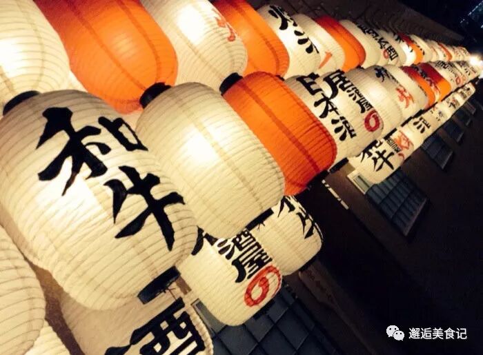 近胡同中段的一片日式灯笼墙,亮起点点红光