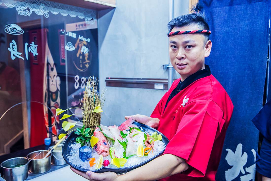 一道菜完工后,帅气的厨师小哥,会用特制的船桨将食物递给你,无敌新奇有趣。
