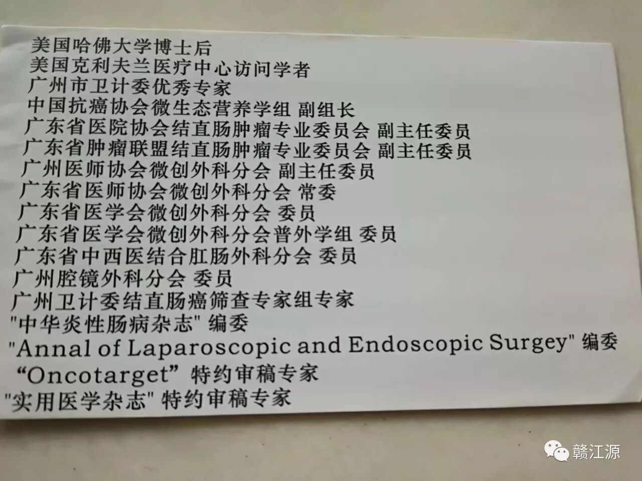 (少了学术职务:中国抗癌协会康复会学术指导委员会(中西医结合分会)副主任委员、候任主任委员,广东省精准医学应用学会结直肠癌分会副主任委员