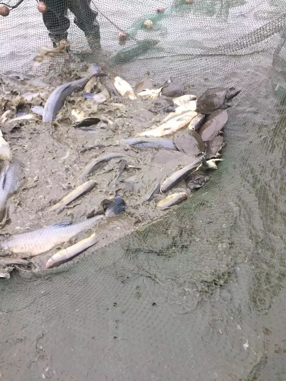 上午八点不到,踏进基地鱼塘埂上,这里已是一派繁忙的拉网捕捉鱼鳖的景象。你看:这边,有的渔民身穿下水裤半藏水中或站立岸滩,前倾后仰、一张一驰拖拽着下钢(索);有的拉拽着上钢(绳);那边,有人收拢着网衣;以上连环动作,同时在左右两边展现。你再看:鱼网慢慢收拢靠岸了,瞬间,网底里激起阵阵涌湍,数十条乌青鱼“泼刺”声声,渔民们用“海斗”舀取网中活鱼,将网底轻轻提升后,拣出了数百只上规格的商品鳖,把鳖体上的烂泥洗净后,将它一一储藏在专用箱里……