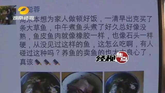 有从易先生这里买草鱼的消费者说,这鱼不但煮不烂,连用高压锅也炖不烂,吃起来就像橡胶一样。