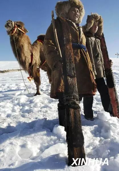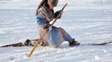 位于阿勒泰市汗德尕特蒙古族乡的敦德布拉克滑雪狩猎岩画上,一排7个人,其中有4个人尾随牛马等动物,3个人弯腰撅臀,手里拿着一根棍子,专家学者们称它为单杆,像是做着滑雪动作,脚下踩着一个长条形物件,便是滑雪板。