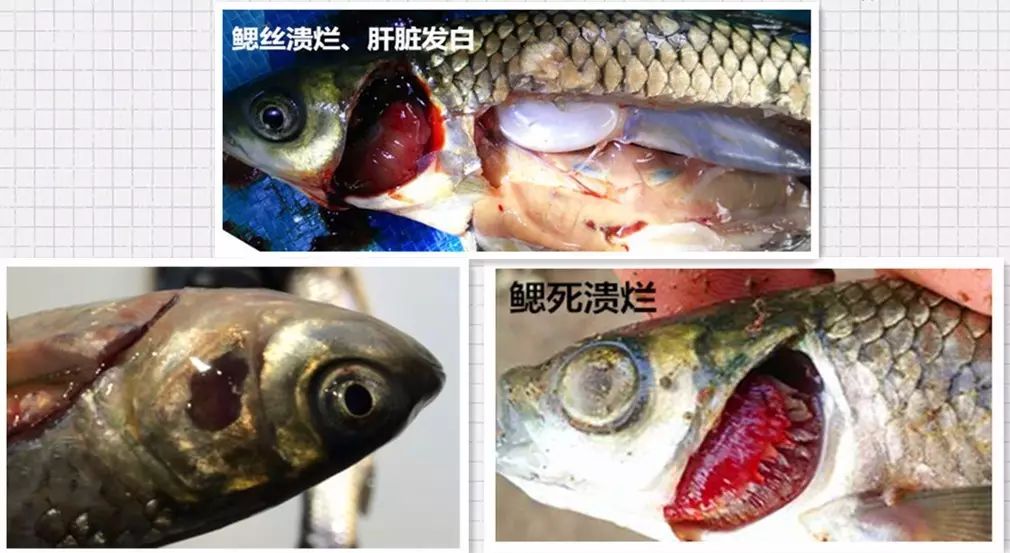 5月7日发现死鱼13条;5月8日,死鱼46条;5月9日,死鱼数量超过1000条。经过解剖,草鱼鳃盖开天窗,鳃丝粘液较多,末端呈扫帚状腐烂,镜检无寄生虫,肝脏发白,肠道无食物,轻微充血,判断是运输应激处理不当继而应发的细菌性烂鳃。