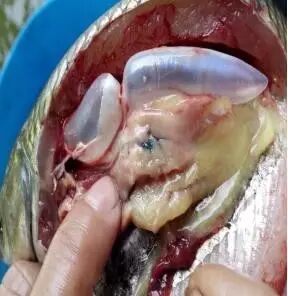 年7月10日,我们接到攀枝花西区养户胡某打来电话寻求帮助,其主养草鱼、鲤鱼、罗非,全程使用101F,33个蛋白,草鱼出现零星死亡(20多条),水面上有大量体色发黑,尾鳍尖部发白,死鱼有烂鳃症状,体表无充血症状。经现场勘查,其水面为4亩,深2m ,外来进水少,水色为绿色,水面无漂浮物,有很多草鱼体色发黑,漂浮在水面。水质检测亚硝酸盐、氨氮均正常。 草鱼体色发黑,尾鳍尖部发白,体表无充血 ,鳃丝软骨外露,鳃丝充血,不规则弯曲,鳃上黑色丝状物较多,无寄生虫。肝颜色为淡黄色,肠外裹着大量脂肪,胆囊轻微萎缩,胆汁颜色偏淡。1、水环境恶化,水中指标长期超标;水中有机质含量过高,水体溶氧不足,病原菌大量滋生;2、鱼体体质差,在用料过程中使用高于养殖品种适用蛋白的产品,养殖过程中滥用抗生素药物,导致鱼体体质过差;3、鱼塘底部环境有机物大量堆积,导致氨气、甲烷、硫化氢等有毒有害气体大量产生,对于造成应激,降低鱼体体质。 第一:本案例中,草鱼有烂鳃并伴有出血症状,判定为细菌性烂鳃,故外用采取消毒,但由于发病,所以采用温和的碘制剂; 第二:在本案例中,由于鱼体有严重的肝胆综合症症状,并伴有细菌感染,所以在方案中,采取先消炎再使用保肝护胆和增强免疫力产品。 选用刺激性小的消毒药物复合碘 第 1、2、4天全池泼洒。 内服过程按全部吃食体重计算药饵用量。选择在当天最后一餐集中拌喂。氟苯尼考连喂4天,按鱼体重计算(氟苯尼考有效成分) 客户投喂药饵4天后病鱼死亡由最初的一天20多条,下降为7~8条,但是6天后每天死亡量一直维持在5~10条,在7月19日对方案作出调整。 2、养殖过程中合理控制投喂率,若为混养鱼塘,需做到均衡投喂; 3、草鱼喜清瘦水质,在养殖过程中需注意水质调节,保证草鱼健康生长; 4、草鱼养殖过程中易出现肝胆损坏,在养殖过程中需定期内服保健,增强抵抗力。