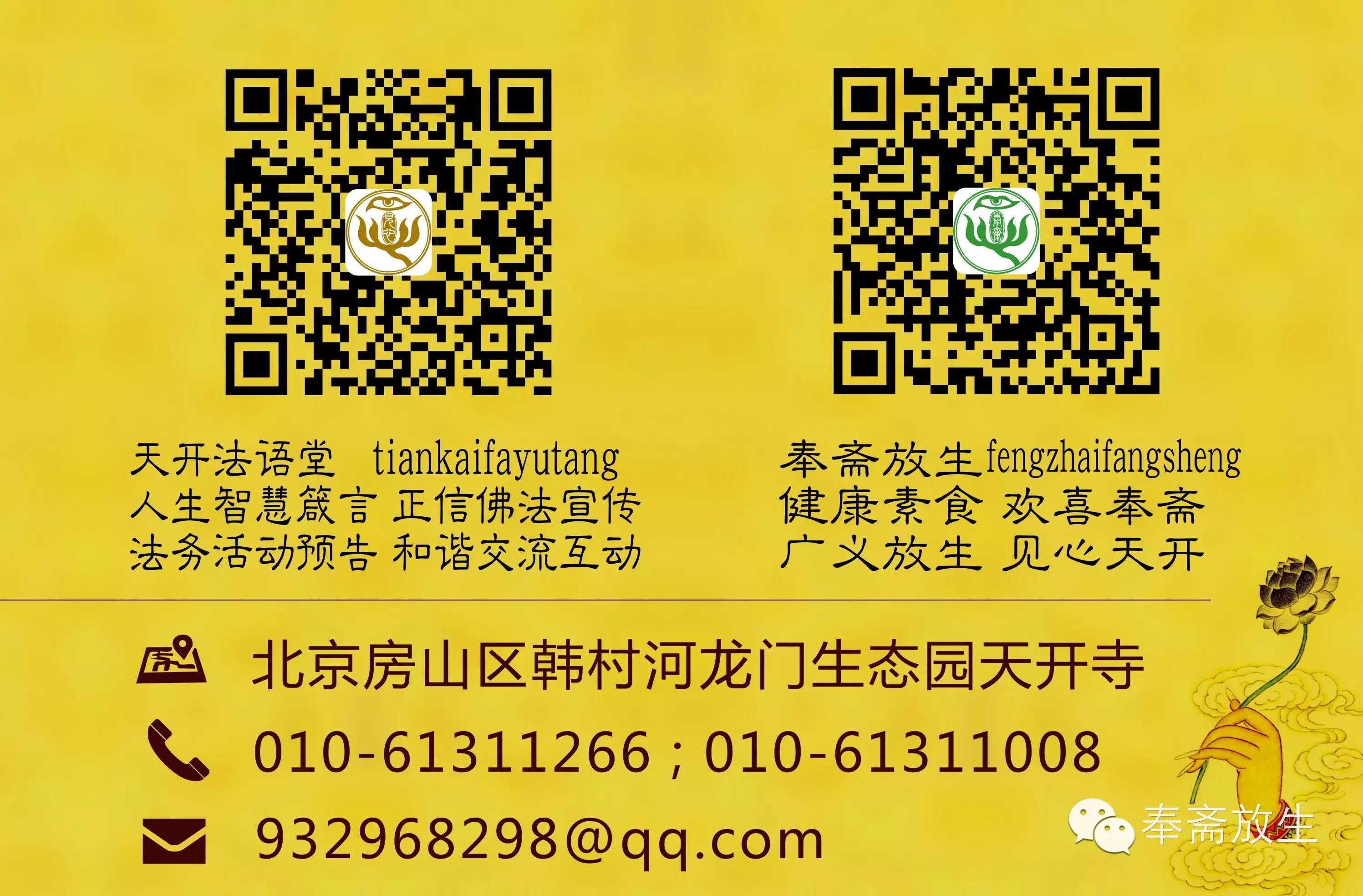智慧、如法的放生,我们是非常赞叹,非常的鼓励大家去做的。如果如理如法的放生很难去进行的时候,尤其是我们北方,那么我们可以考虑奉斋,这是一种新形式的放生,或者说是一种对放生的补充、一种放生的助行。奉斋同样可以达到放生的效果,也能够满足大家放生的需求。所以奉斋是对如理如法的放生的一个补充和辅助,我们并不是要用奉斋取代如法的传统放生形式,不是这个意思。
