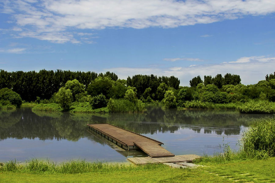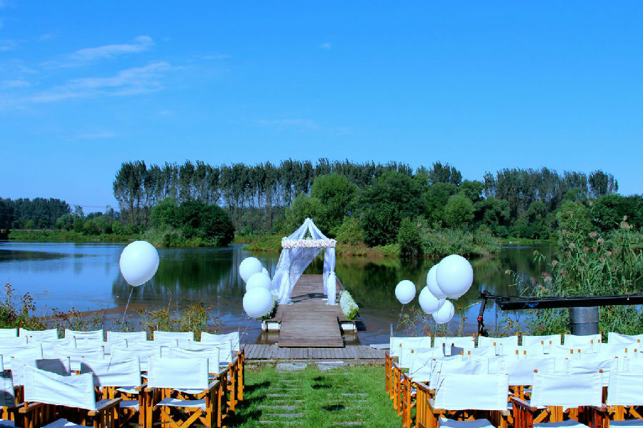 而延伸到湖心的木栈桥则成了大多新人青睐的仪式区。湖心的四座小岛和如画的美景则为婚礼仪式充当了背景,随处可见的苍鹭、野鸭等野生鸟类和郁郁葱葱的水生植物造就了独特的婚礼场地。