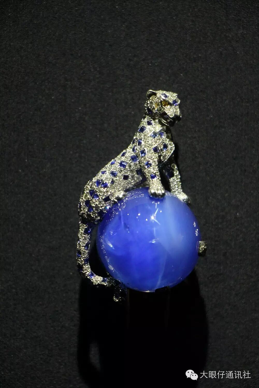 铂金、白金、1颗重达152.35克拉的克什米尔凸圆形蓝宝石、钻石、蓝宝石;来自温莎公爵夫人