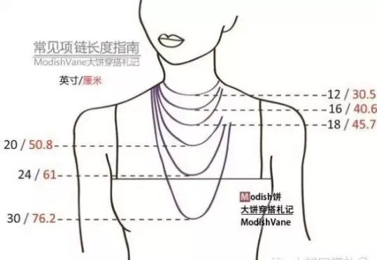 其实道理不用多说,相信大家都懂的咯。首先,咱普及一下项链的名称:根据国际标准的尺度,在36~40厘米之内的叫短项链;42~107厘米的叫渐层型项链:其中,42厘米的叫公主项链,54厘米的叫晨装项链,71厘米的叫礼服项链;超过107厘米的叫长项链或超长项链。