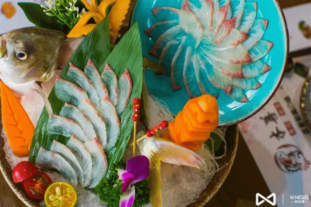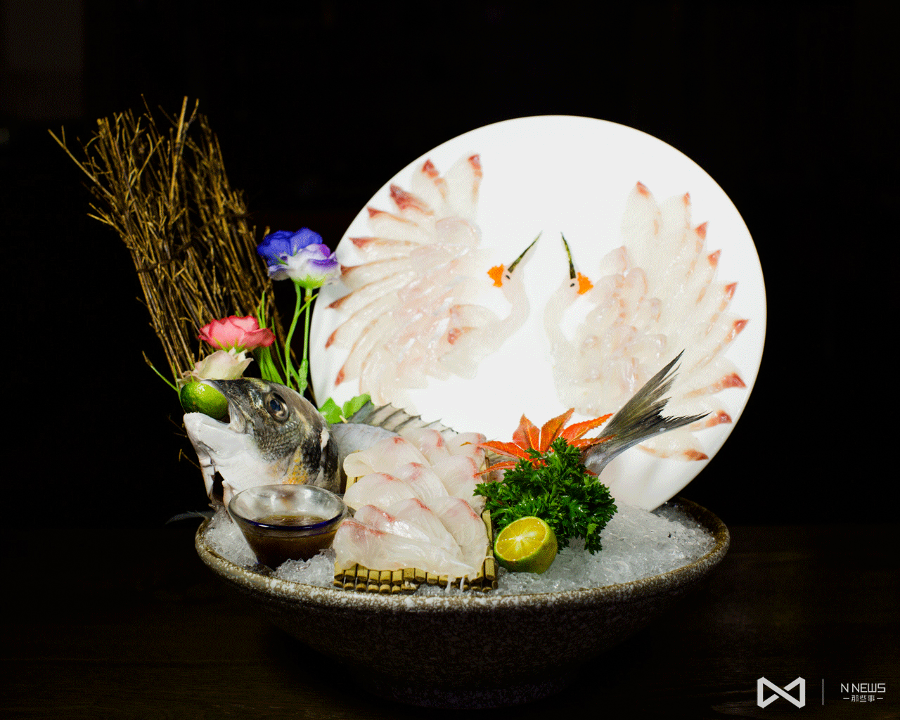 颜值高到cry的刺身,仙鹤摆盘,每片鱼片厚度几乎一致,可见师傅刀工精湛,简直就是餐桌上的艺术品!