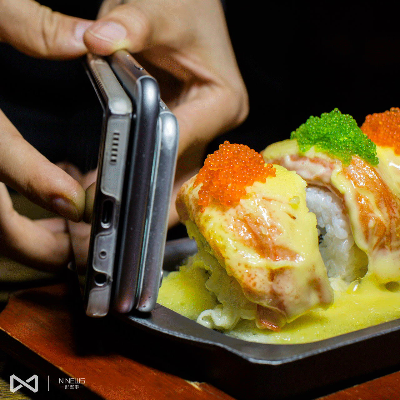 老粉一定不会不知道这份寿司热卷,从它上桌的刹那,我就知道它不简单。除了外观变得厚重,芝士量更是残暴!