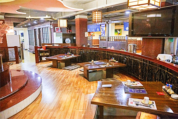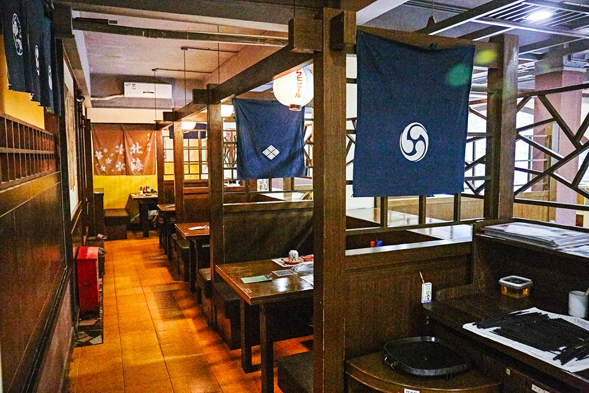 北海的环境为和式装修,原木色木板隔开的隔间,为每一桌顾客都保留了一定的私人空间。