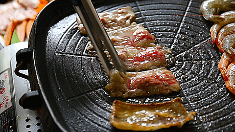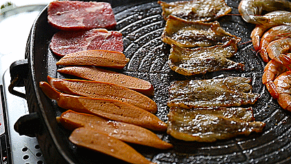 只要把你喜欢的肉都放到烤盘上,时不时地帮它们翻一翻,不一会儿就能吃到香喷喷的烤肉啦!