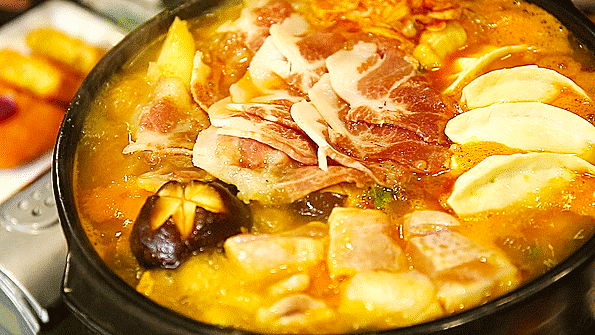 万万没想到泡菜火锅也是自助餐中的一类哦!老板真会玩!满满一大锅里都是各种菌菇、肥牛和蔬菜。汤底酸辣开胃,越吃越上瘾。而肥牛在滚烫的汤汁中很容易就涮熟,口感嚼而无渣,肥瘦兼并,挺好吃的。