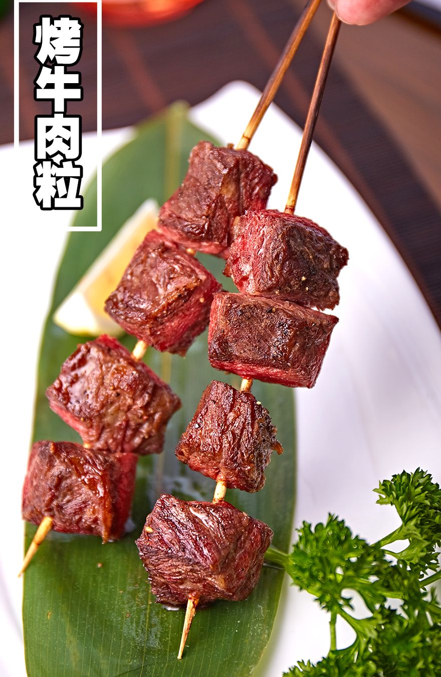 一口牛肉是西冷牛扒肉,它的口感偏为柔嫩,经过调味腌制的它特别好吃,汁水满溢齿间;而烤牛肉粒吃起来是比较有嚼劲的,烤过之后还蔓延着一股淡淡的焦香。