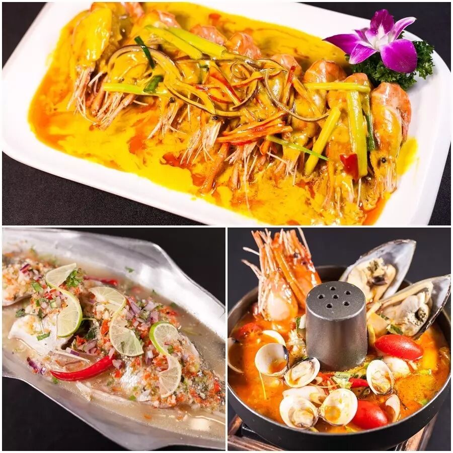推荐菜品:冬阴功海鲜、 泰式炭烧蜜糖辣鸡、咖喱原大鱿鱼、澳洲骑士红葡萄酒