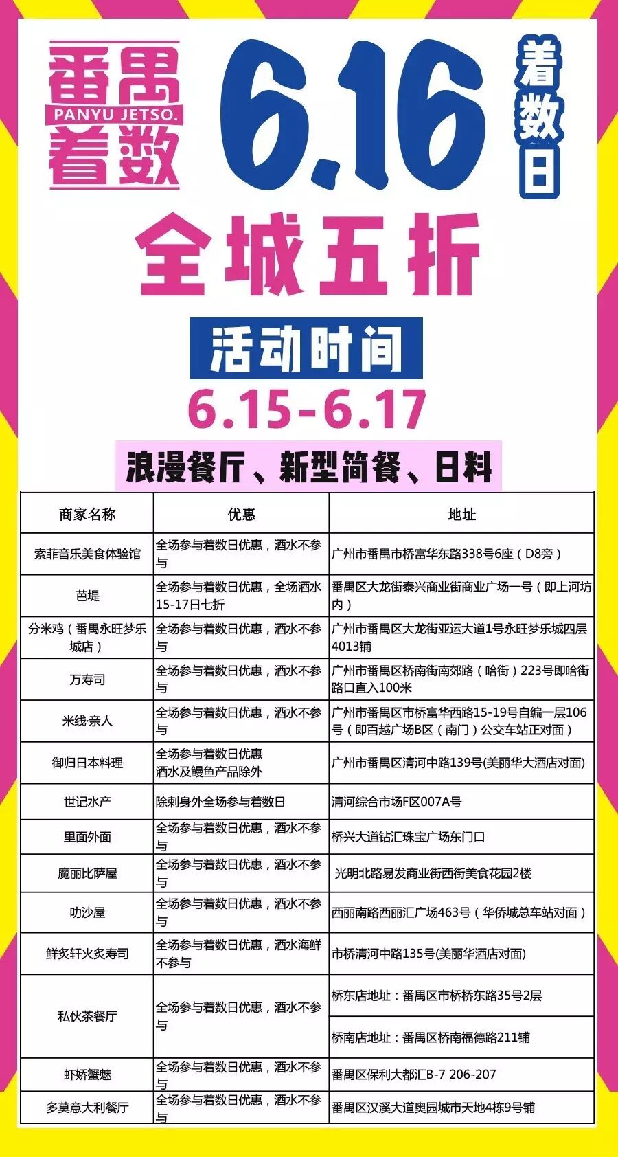 持着数卡享15号5折、16号6折、17号7折优惠!(刺身除外)