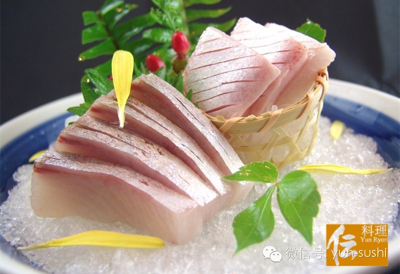 【章红鱼刺身】俗名:红甘鱼, 在日本亦称为kanpachi(勘八鱼);章红鱼肉质鲜美清脆、爽口、咬劲好,是鱼生的上等原料,备受鱼生爱好者的青睐,是生食市场近年来的新宠。有些鱼生爱好者说,吃了章红鱼生,其他鱼生都觉得没味了。