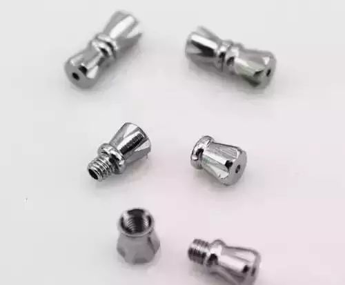 此种接扣通过弹簧片卡入槽中固定,外形可以装饰,做成镂空的或者镶嵌个宝石在上头,创意随便你发挥。形状可圆可方: