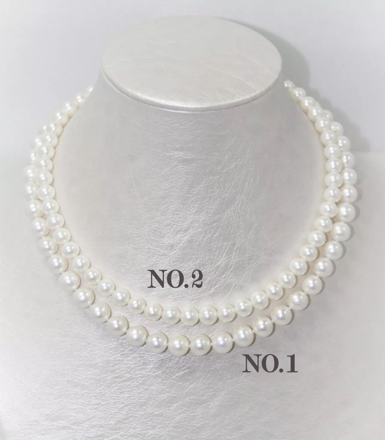 珍珠圆润,颗粒饱满,毫无瑕疵。用如上几条原则分析,NO.2在圆度,光泽和净度上的表现都要更加优秀一些,整体珍珠品质更为奢侈,这也是为什么她珠子小一些,但是价格还要稍高的原因。
