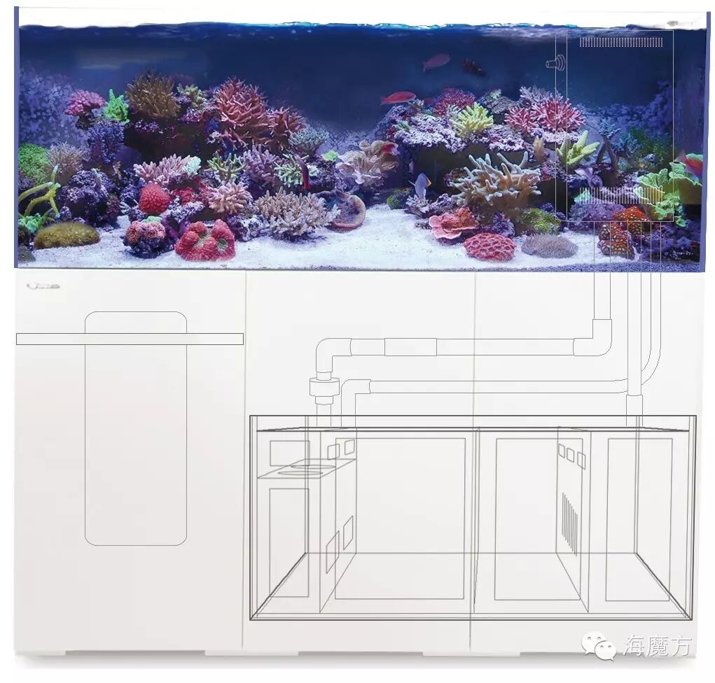 3、底部过滤预留海藻仓,更进一步保证了水质的净化,最大程度上满足珊瑚的生长需求。