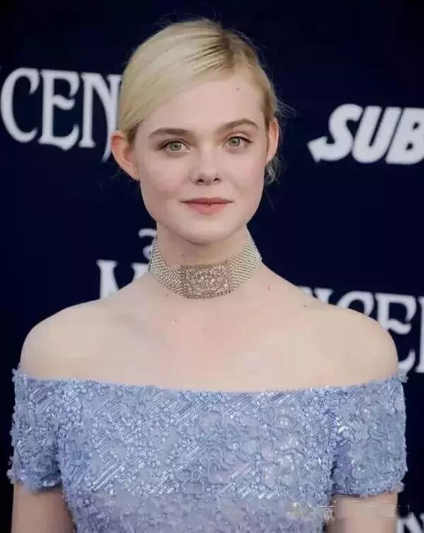 一向温润如玉的艾丽·范宁 (Elle Fanning),将项圈颈链带出了优雅大气,与一字领礼服完美呼应。
